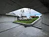 Det nye anlegget er innfelt i det skrånende parkdraget