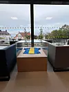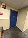 også tribuner med utsyn til flerbrukshallen. Utenfor bygningskroppen, men under