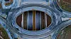 og begge bruene bæres på fire slanke og runde søyler.