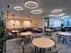 et dempet uttrykk. Den nye bygningsmassen er delt opp i volumer med variasjon i
