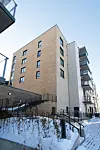 trekledning på balkongene. Det fjerde bygget – som henvender seg mot Asker