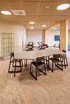 Med mye eksponert massivtre i interiøret på skolen,