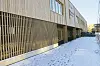 ytterveggene er prefabrikkerte elementer med vinduer, panel og solskjerming.