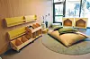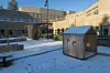 to etasjer. Videre er avdelinger organisert rundt egne små torg hvor de deler