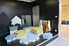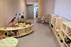 et mindre avdelingskjøkken, grupperom og fellesfunksjoner. Kjøkken og garderobeinnredning