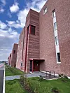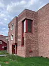 benyttet en lys rød teglstein, med noe innslag av trepanel.