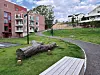 gode fellesarealer, som blant annet grøntområde mellom blokkene, med ulike