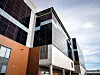 en spesiell fasade, der solceller dekker deler av veggene. Gavlveggene er også