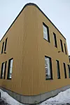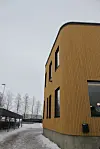 til gamlebygget. Fargene og materialvalgene på tilbygget er inspirert av låver