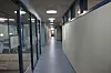 nye tilbygget har samme gulvbelegg og malte gipsplater på veggene, sier Hagen.