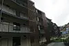 toppen av det gamle industribygget som delvis ble revet.