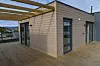 klimavegger som er kledd med trepanel og Steniplater. Fjernvarme leverer energi