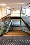 kontorlandskap. De har også en åpen, sosial sone i sjuende etasje. Det er en