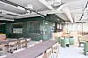 personalrestaurant og kafé i en halvdel. I andre halvdel er det kontorarealer