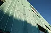Fasaden er av perforerte stålplater