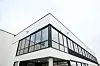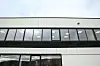 fasadeplater på administrasjonsbygget. Her er det også glassfasade og vinduer