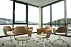 malt gips på vegger, teppeflis på gulv, og systemhimling. Kontorområdet har