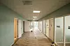 malte betongvegger. I administrasjonsdelen er det malt betong og sparkler og