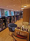 Bygget er totalrehabilitert og rommer blant annet biblioteket og kontorarealer