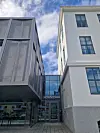 som er integrert med de to eksisterende byggene på den trange tomta midt i