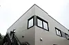Utvendige materialer er Steni fasadeplater og tre-alu