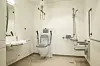 vendbart toalett med hev-senk-funksjon. Her er også pasientheis i taket på bad