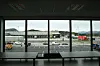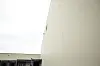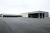 mens terminaldelen har eksponerte malte betongelementer og sandwichpaneler.