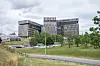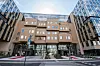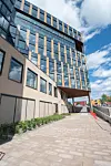 besøkende i bygget, samt inngangen til samtlige seks fløyer.