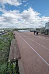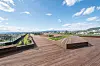 takareal med terrasse og løpebane, blått tak og plantekasser hvor det dyrkes