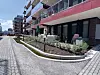 busker, trær og grønt-områder. Det er installert lekeapparater, sittegrupper og