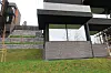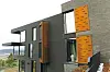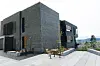 corten-stål i diverse former for å bryte opp fasaden. Det er også innslag av