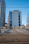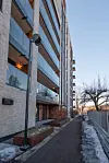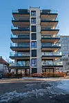 en blokk på 18 leiligheter fordelt på fem etasjer, helt i den sørlige enden av