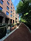 som går langs elva og en hyggelig «studenthage». På gateplan er det, i tillegg