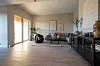 treverk på uteplasser. Enkelte elementer ved inngangspartiene får fargede