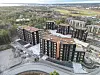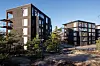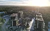 leilighetsbyggene ligger nesten øverst i åsen, og med skogen som nærmeste nabo