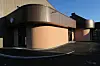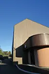 og en buktende fasade som binder helheten. Materialbruken er preget av