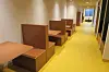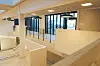 bebyggelse via en klimatisert gangsone, som omkranser ett indre atriumsrom.