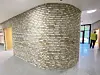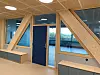 undervisningsrommene kledd med plater i kryssfiner, som er behandlet med en