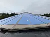 Beslagene rundt glasset i kuppelen er av aluminium, mens en vifte under