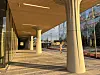 Øst og Vest. Konstruksjonen er av betong, med glass og aluminium i fasadene.