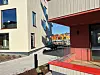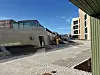 På østsiden av byggene, inngangssiden, ferdigstilles