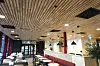kaféområdet. Her er det møysommelig montert spiler av furu som er