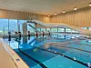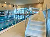 enden av svømmehallen ligger badstue og terapibasseng, hvor gulvet kan senkes