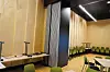 ved hjelp av en foldevegg. I den ene enden står en mobil scene som ifølge Frode