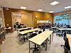 mens klasserommene og de øvrige rommene har gulvbelegg med lyddemping.