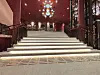 gammelt engelsk teater. Selv trappegelenderne er trukket i rød fløyel.