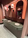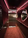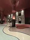 som en kokong av dyp rød fløyel. Rundt omkring i bygget får man assosiasjoner i