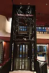 heisen er dekorert med elegante kruseduller i smijern. Innvendig er heisrommet