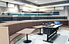 undervisningslokalene er det skjermer på hver arbeidsstasjon som kan senkes og