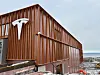 består av sandwich-elementer. Øvre del av fasaden er kledd med elementer med